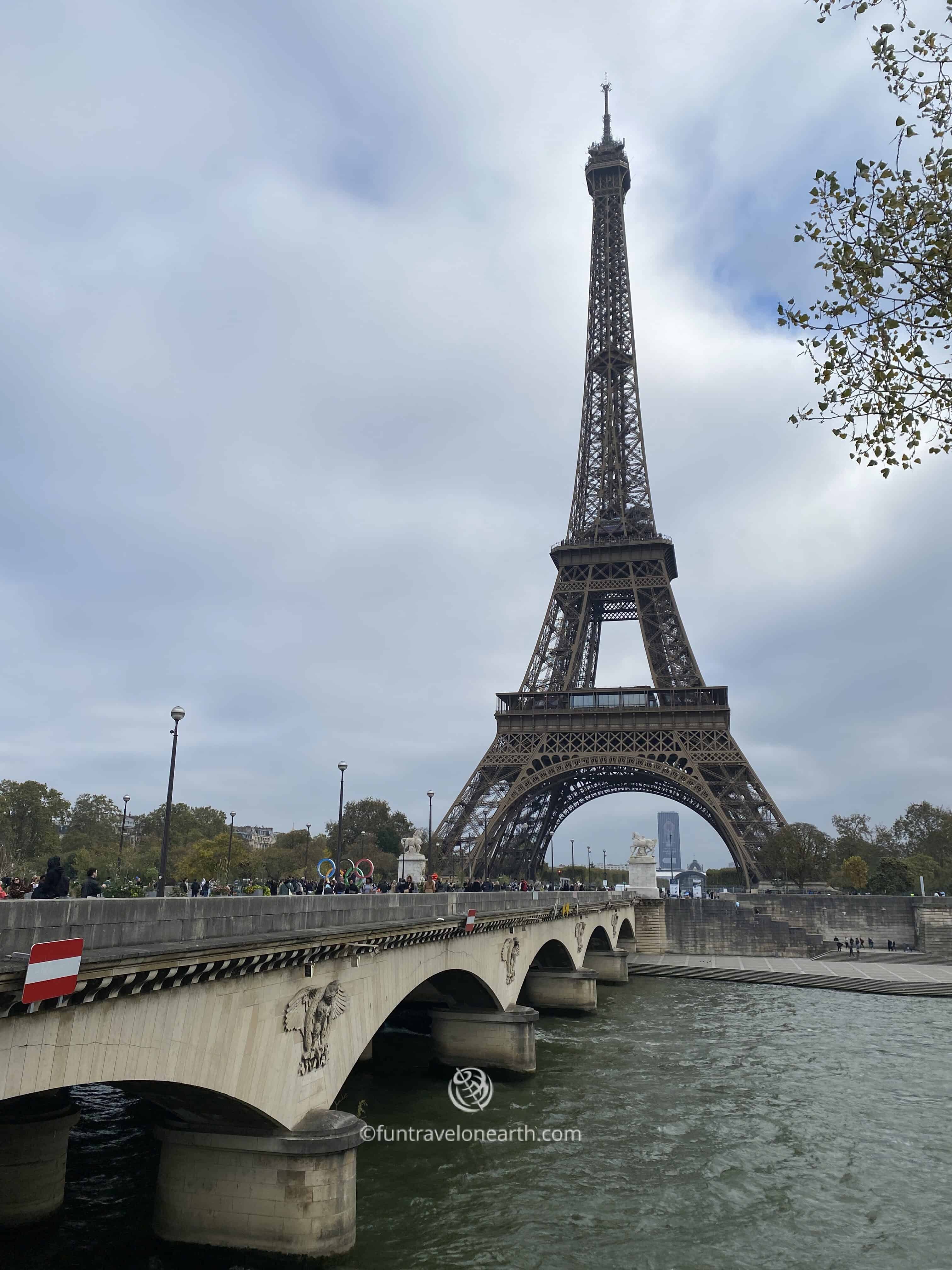 メトロのトロカデロ駅で下車し、Place du Trocaderoからエッフェル塔を撮影、それから公園内の階段を下りて、Pont d’Iénaの辺りからエッフェル塔とセーヌ川の近影を撮影し、エッフェル塔へ近づいていく一連の流れは、エッフェル塔へ向かう撮影含めた効率良いルートのひとつです。