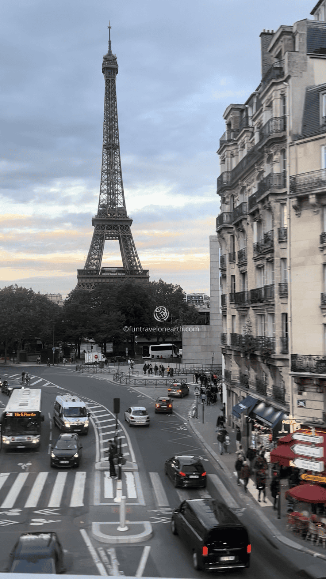 バス82番、42番、69番、86番、80番は少し歩くとエッフェル塔に着きます。