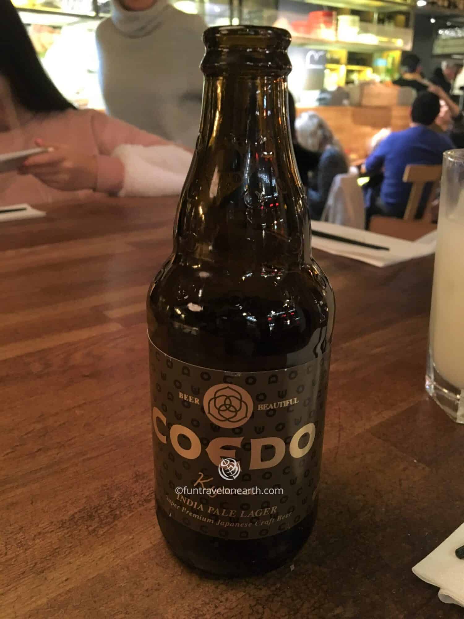 日本のクラフトビールCOEDO。漆黒Shikkokuと伽羅Kyaraのどちらにするか迷い、気分で伽羅に。