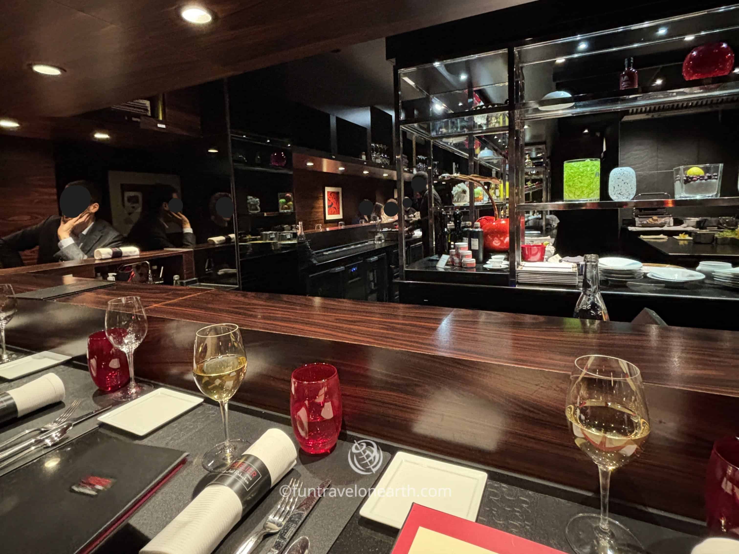 そこで、調理、あるいは最後の仕上げを、席から目にすることができます。