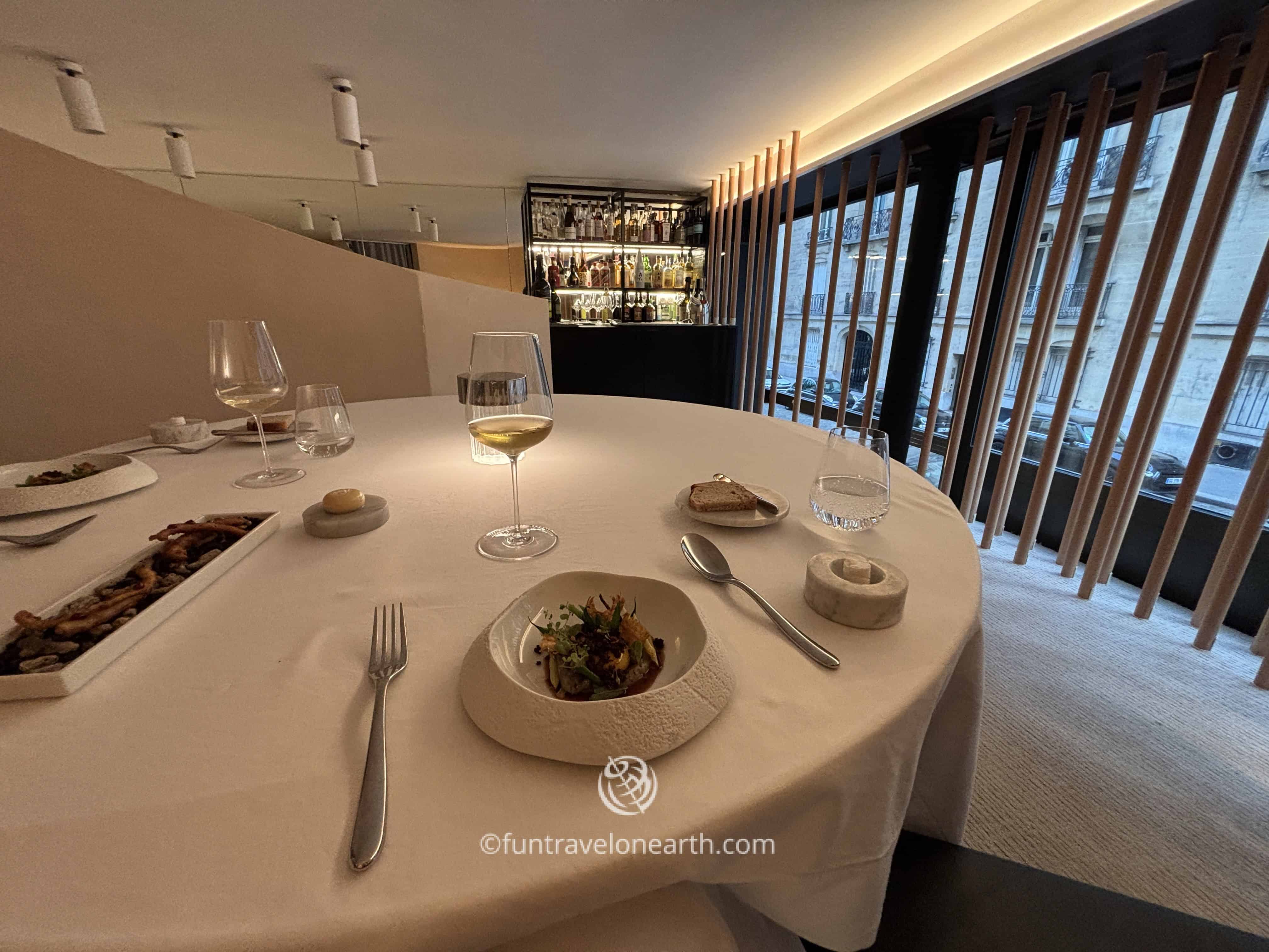 パリのレストランでは珍しく、テーブルとテーブルの空間にゆとりがあり、ゲストが適度な距離間でお食事を楽しめます。